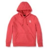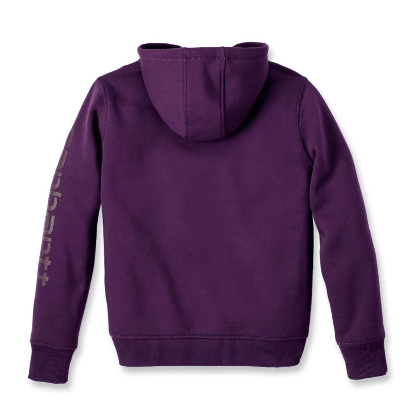 Cold winter mornings are a lot more comfortable with this women′s cozy hoodie. Made of heavyweight fleece, the sweatshirt is brushed on the inside for extra softness. It has a relaxed fit that allows for easy layering, and it′s finished with a Carhartt logo down the sleeve.